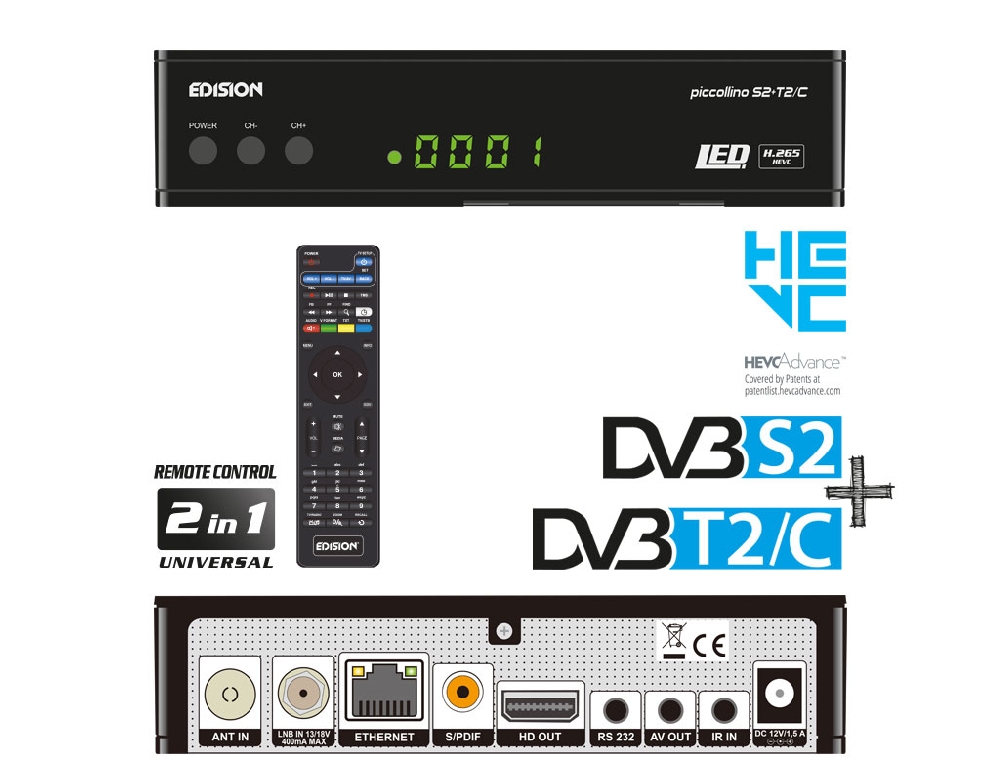 Ο PICCOLLΙΝΟ S2+T2/C είναι ο νέος ”μικρός” H.265/HEVC 10 Bit COMBO δέκτης της EDISION με δύο tuner, θύρα Card Reader και δυνατότητα επιλογής DVB-S & DVB-S2 για το δορυφορικό tuner αλλά και DVB-T/T2 ή DVB-C tuner. Με νέας γενιάς επεξεργαστή, σας προσφέρει ταχύτατη εναλλαγή στο μενού και στα κανάλια, ενώ διαθέτει αποθηκευτική ικανότητα έως 6000 καναλιών. Η θύρα LAN στα 100Mbps για πρόσβαση σε web εφαρμογές μαζί με τις λειτουργίες Media Player που διαθέτει, σε συνδυασμό με το εκλεπτυσμένο, ποιοτικό 2-σε-1 τηλεχειριστήριο EDI-RCU 2 Learn Slim για τηλεχειρισμό του δέκτη και 5 λειτουργιών της TV, θα κάνουν ακόμα πιο διασκεδαστική και απολαυστική την χρήση των πολλών, αγαπημένων σας λειτουργιών. Φυσικά, συνοδεύεται και απο την εγγύηση και την υποστήριξη της EDISION.